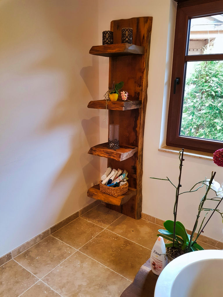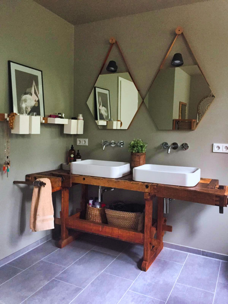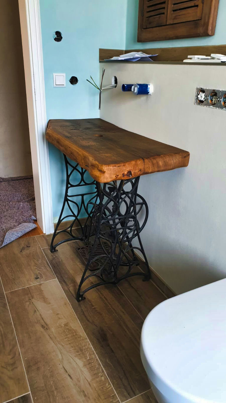 Ein beliebtes Material für Badmöbel ist Altholz, das ein rustikales und warmes Ambiente schafft. Wir können alte Türen oder Holzbalken wiederverwenden und sie in einzigartige und schöne Badmöbel verwandeln, wie beispielsweise einen Badtisch oder ein Waschbeckenunterschrank.