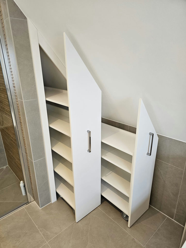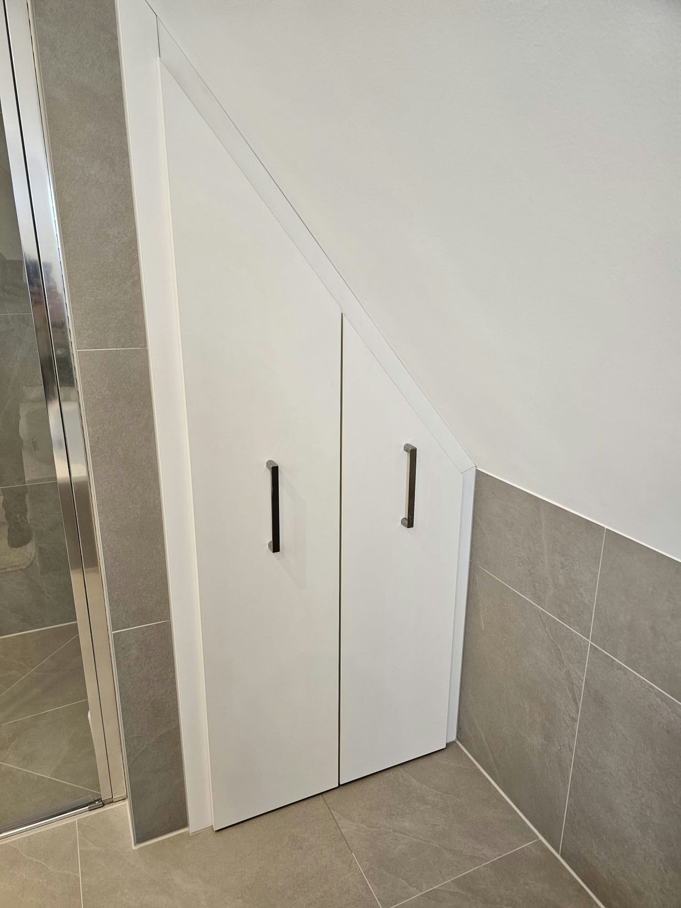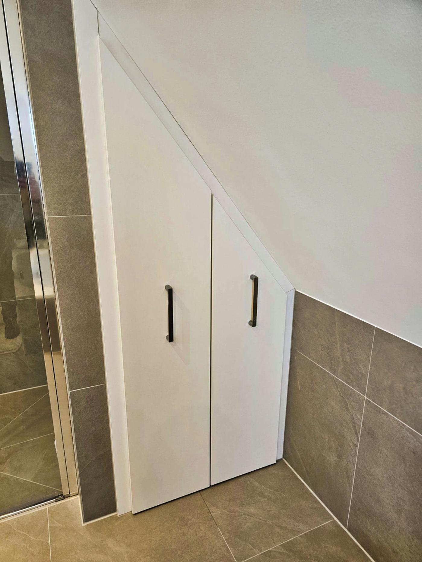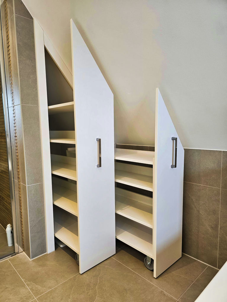 Unsere Tischler können auch individuelle Spiegelrahmen und Aufbewahrungslösungen entwerfen und bauen, um Ihre Badewanne oder Dusche zu ergänzen. Wir können Regale und Schränke entwerfen und bauen, um Ihre Badutensilien und Handtücher aufzubewahren, damit sie immer griffbereit sind.