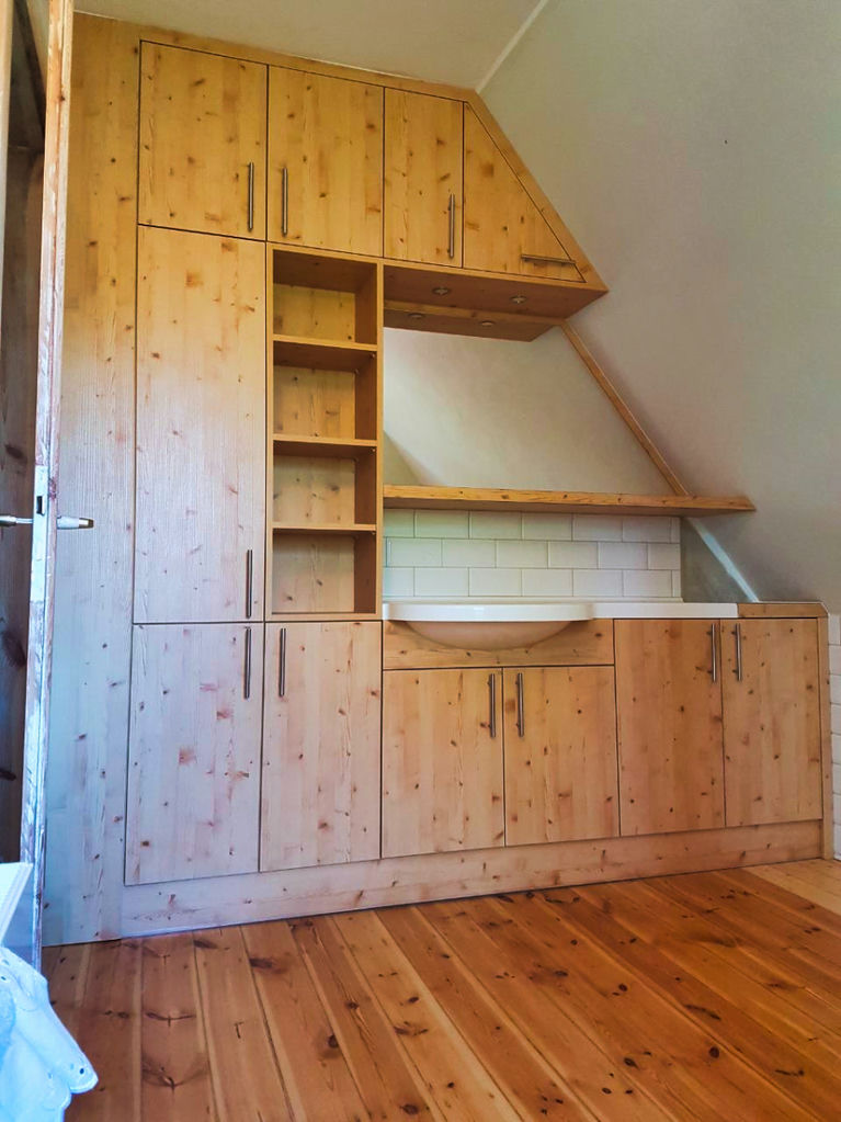 Die Küche ist das Herzstück jedes Hauses und sollte nicht nur funktional, sondern auch ästhetisch ansprechend sein. Unsere erfahrenen Tischler können Ihnen dabei helfen, Ihre Traumküche zu verwirklichen - von der Planung und Gestaltung bis zur Fertigung und Installation. Wir bieten eine große Auswahl an Materialien und Stilen, um sicherzustellen, dass Ihre Küche perfekt zu Ihrem Zuhause passt und Ihren individuellen Geschmack und Bedürfnisse widerspiegelt. Neben neuen Küchen bieten wir auch Küchen-Makeovers an. Wir können Ihre bestehende Küche modernisieren, indem wir neue Arbeitsplatten, Schränke oder Griffe hinzufügen oder Ihre Küche komplett neu gestalten. Wir können auch zusätzliche Elemente wie Kücheninseln oder Frühstückstheken hinzufügen, um Ihre Küche funktionaler und stilvoller zu gestalten.