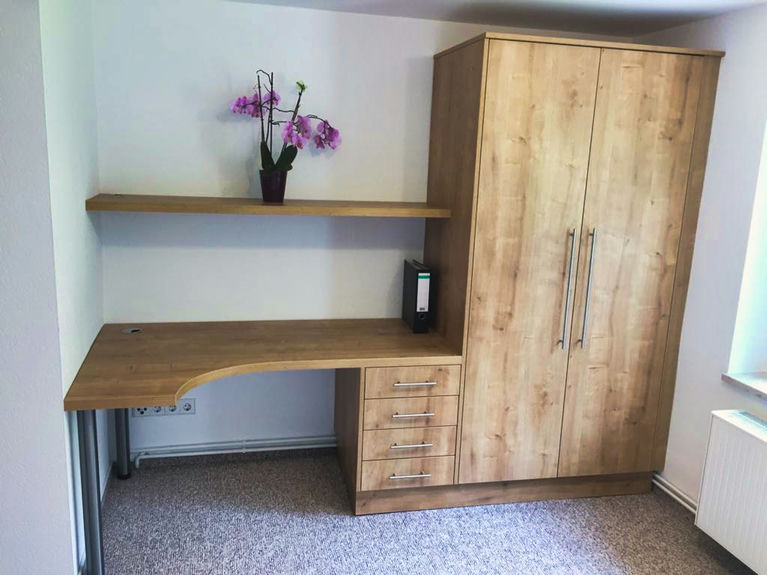 8 Stunden im Homeoffice oder nur mal „nebenbei“ ein wenig arbeiten. Egal, unsere maßgeschneiderten Büromöbel bieten nicht nur genügend Platz für Computer, Drucker und Büromaterial, sondern sind auch stilvoll, ästhetisch ansprechend und ergonomisch. …