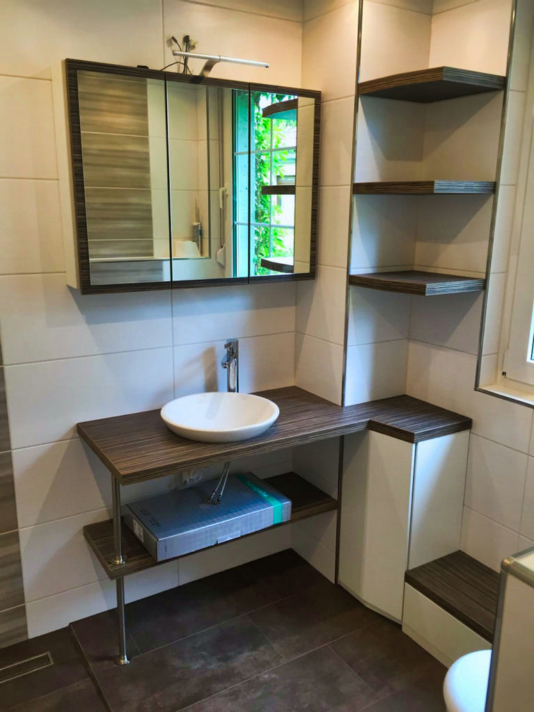 Wir können individuelle Badmöbel entwerfen und bauen, die perfekt auf Ihre Bedürfnisse abgestimmt sind. Wir können verschiedene Materialien wie Holz, Stein oder Metall verwenden, um das Design anzupassen, und wir können auch spezielle Funktionen wie Schubladen, Regale und Handtuchhalter einbauen.