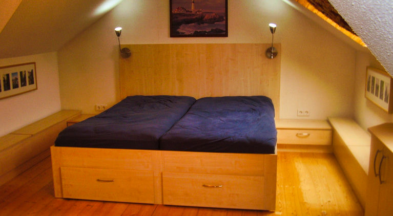 Ob Sie ein modernes, minimalistisches Schlafzimmer bevorzugen oder einen romantischen Landhausstil - wir beraten Sie gerne und unterstützen Sie bei der Wahl der richtigen Holzart, Farbe und Ausführung, um eine perfektes Wohlfühloase zu schaffen.